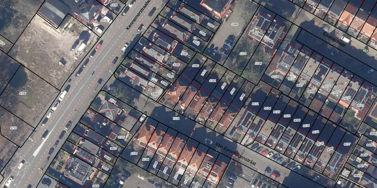 Gebruik de zoekbalk of klik op een perceel voor informatie over de adressen binnen dit perceel.