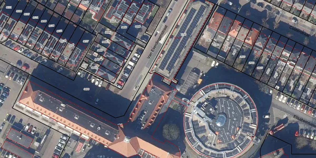 Het perceel waarop Van Everdingenstraat 52 staat heeft een oppervlakte van 1,5 ha. Dit is een zeer groot perceel. De perceeloppervlakte wordt geregistreerd door het Kadaster. Gedetailleerde informatie over de maten van dit perceel kunt u vinden in het rapport Kadastrale kaart met maatvoering van Van Everdingenstraat 52.