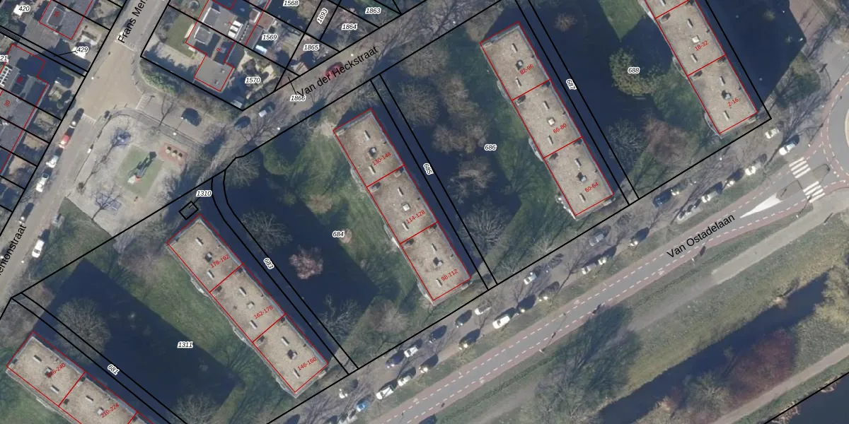 Van Ostadelaan 116 is gelegen op kadastraal perceel AMR01D684. Deze kadastrale aanduiding is uniek en wordt gebruikt door het Kadaster om eigendomsrechten en andere zakelijke rechten vast te leggen. Het perceel maakt onderdeel uit van de kadastrale gemeente Alkmaar.