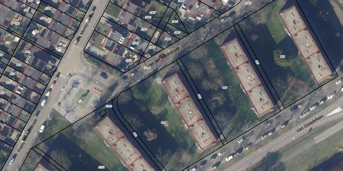 Het perceel waarop Van Ostadelaan 138 staat heeft een oppervlakte van 2280 m². Dit is een zeer groot perceel. De perceeloppervlakte wordt geregistreerd door het Kadaster. Gedetailleerde informatie over de maten van dit perceel kunt u vinden in het rapport Kadastrale kaart met maatvoering van Van Ostadelaan 138.