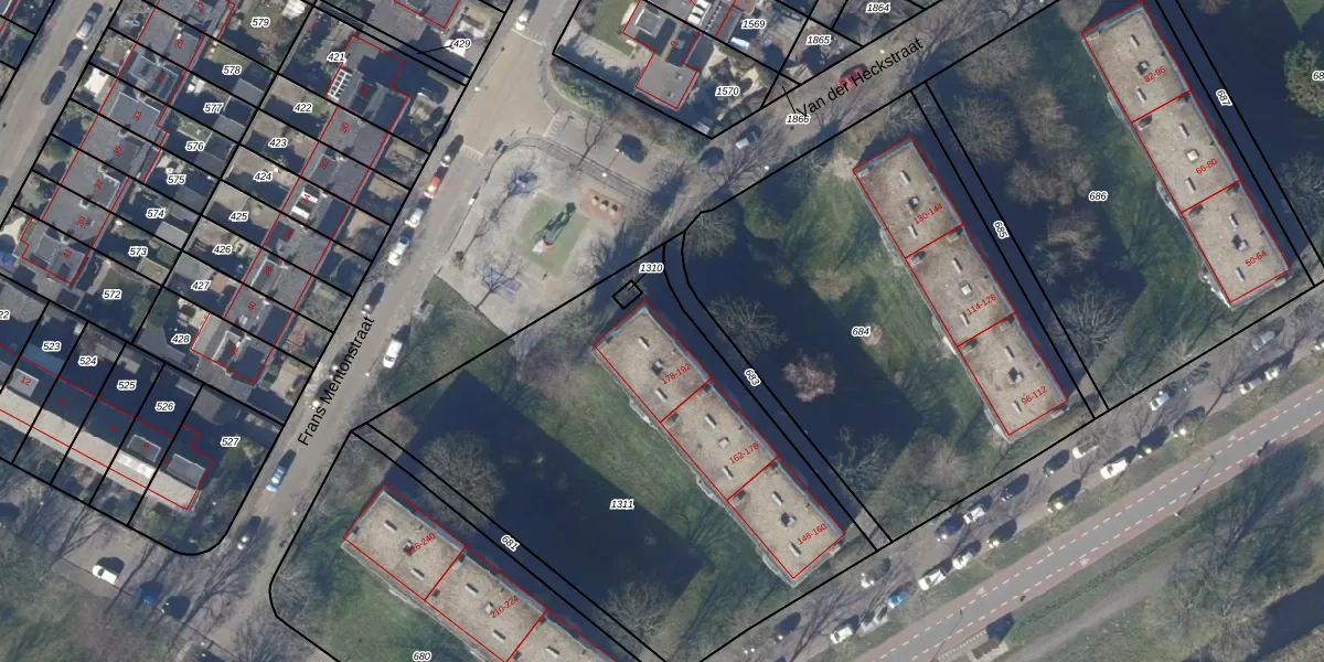 Het perceel waarop Van Ostadelaan 178 staat heeft een oppervlakte van 2360 m². Dit is een zeer groot perceel. De perceeloppervlakte wordt geregistreerd door het Kadaster. Gedetailleerde informatie over de maten van dit perceel kunt u vinden in het rapport Kadastrale kaart met maatvoering van Van Ostadelaan 178.