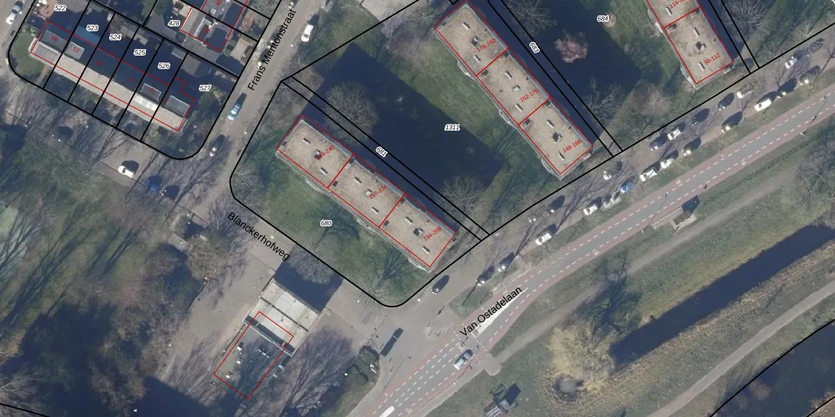 Van Ostadelaan 194 is gelegen op kadastraal perceel AMR01D680. Deze kadastrale aanduiding is uniek en wordt gebruikt door het Kadaster om eigendomsrechten en andere zakelijke rechten vast te leggen. Het perceel maakt onderdeel uit van de kadastrale gemeente Alkmaar.