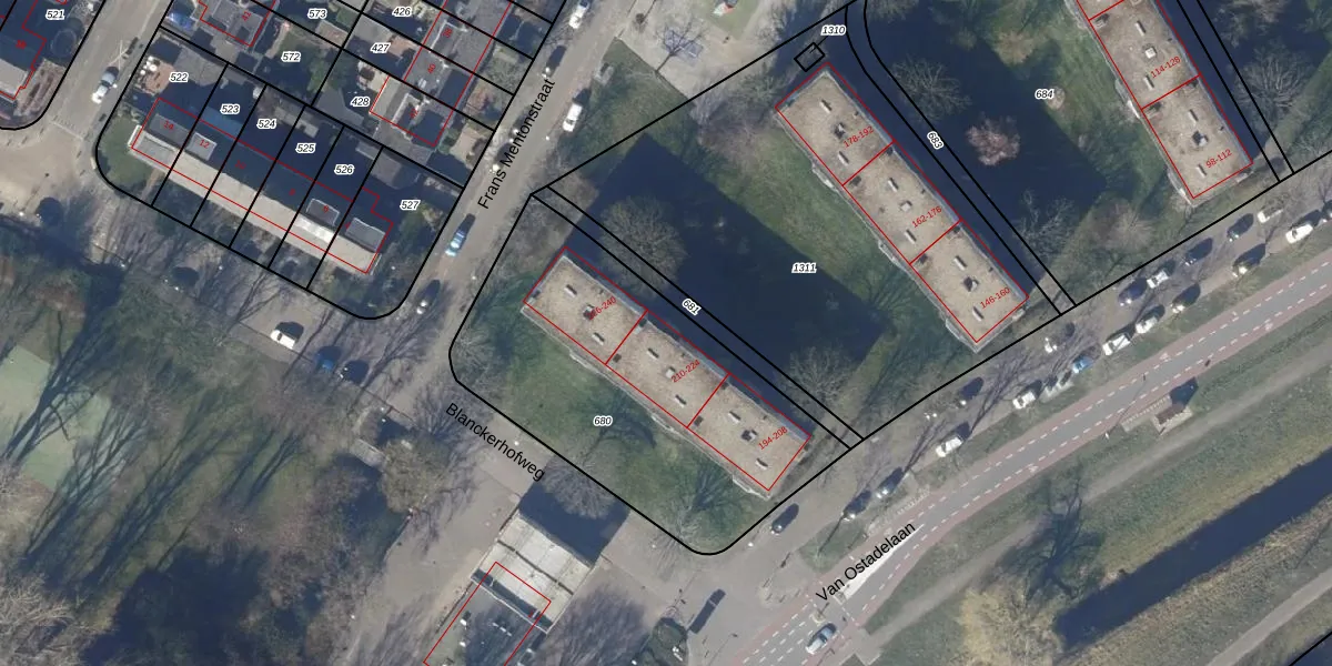Van Ostadelaan 210 is gelegen op kadastraal perceel AMR01D680. Deze kadastrale aanduiding is uniek en wordt gebruikt door het Kadaster om eigendomsrechten en andere zakelijke rechten vast te leggen. Het perceel maakt onderdeel uit van de kadastrale gemeente Alkmaar.