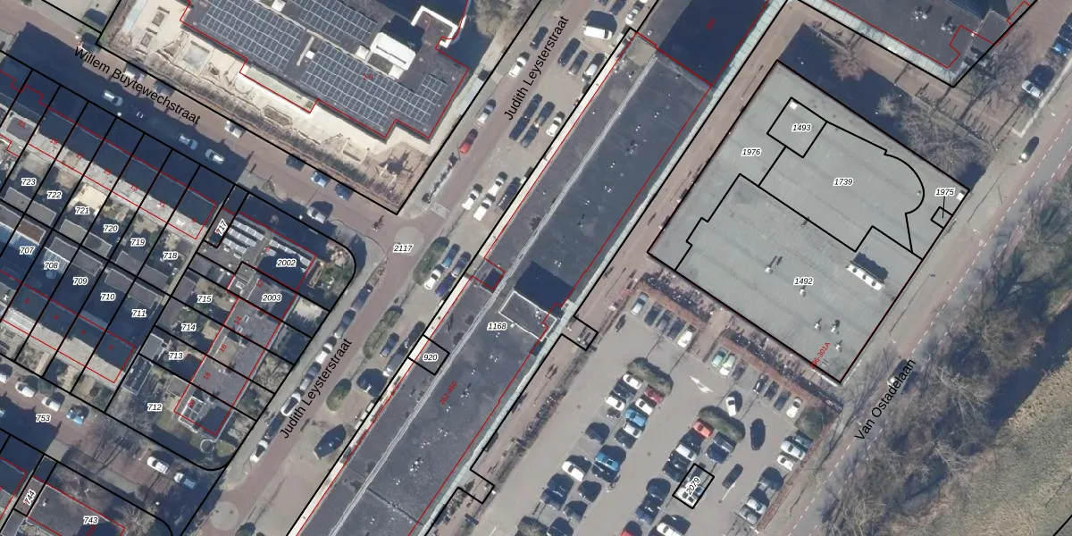 Het perceel waarop Van Ostadelaan 378 staat heeft een oppervlakte van 4643 m². Dit is een zeer groot perceel. De perceeloppervlakte wordt geregistreerd door het Kadaster. Gedetailleerde informatie over de maten van dit perceel kunt u vinden in het rapport Kadastrale kaart met maatvoering van Van Ostadelaan 378.