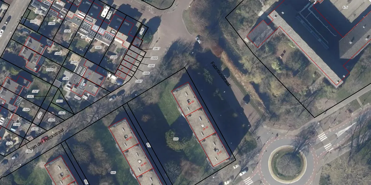 Het perceel waarop Van Ostadelaan 38 staat heeft een oppervlakte van 2075 m². Dit is een zeer groot perceel. De perceeloppervlakte wordt geregistreerd door het Kadaster. Gedetailleerde informatie over de maten van dit perceel kunt u vinden in het rapport Kadastrale kaart met maatvoering van Van Ostadelaan 38.