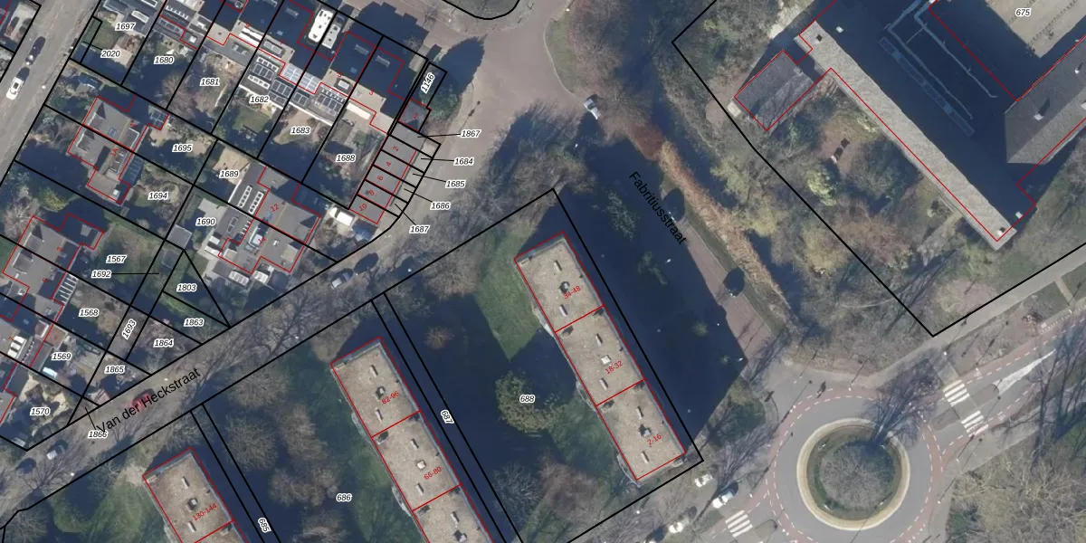 Het perceel waarop Van Ostadelaan 42 staat heeft een oppervlakte van 2075 m². Dit is een zeer groot perceel. De perceeloppervlakte wordt geregistreerd door het Kadaster. Gedetailleerde informatie over de maten van dit perceel kunt u vinden in het rapport Kadastrale kaart met maatvoering van Van Ostadelaan 42.