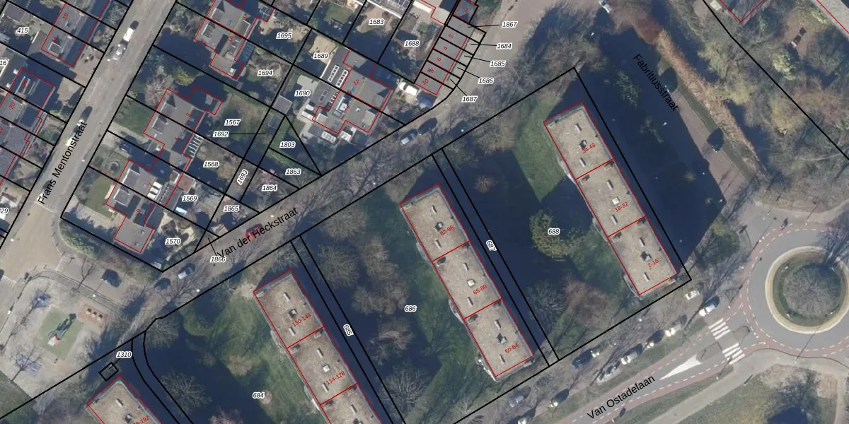 Van Ostadelaan 90 is gelegen op kadastraal perceel AMR01D686. Deze kadastrale aanduiding is uniek en wordt gebruikt door het Kadaster om eigendomsrechten en andere zakelijke rechten vast te leggen. Het perceel maakt onderdeel uit van de kadastrale gemeente Alkmaar.