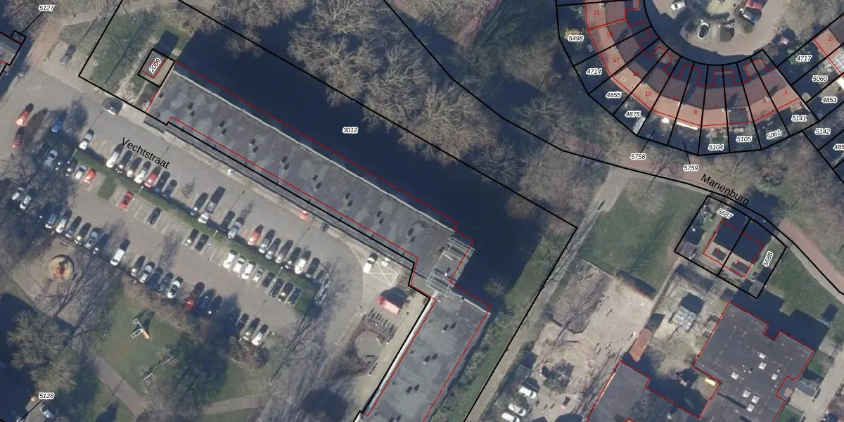 Het perceel waarop Vechtstraat 108 staat heeft een oppervlakte van 4233 m². Dit is een zeer groot perceel. De perceeloppervlakte wordt geregistreerd door het Kadaster. Gedetailleerde informatie over de maten van dit perceel kunt u vinden in het rapport Kadastrale kaart met maatvoering van Vechtstraat 108.