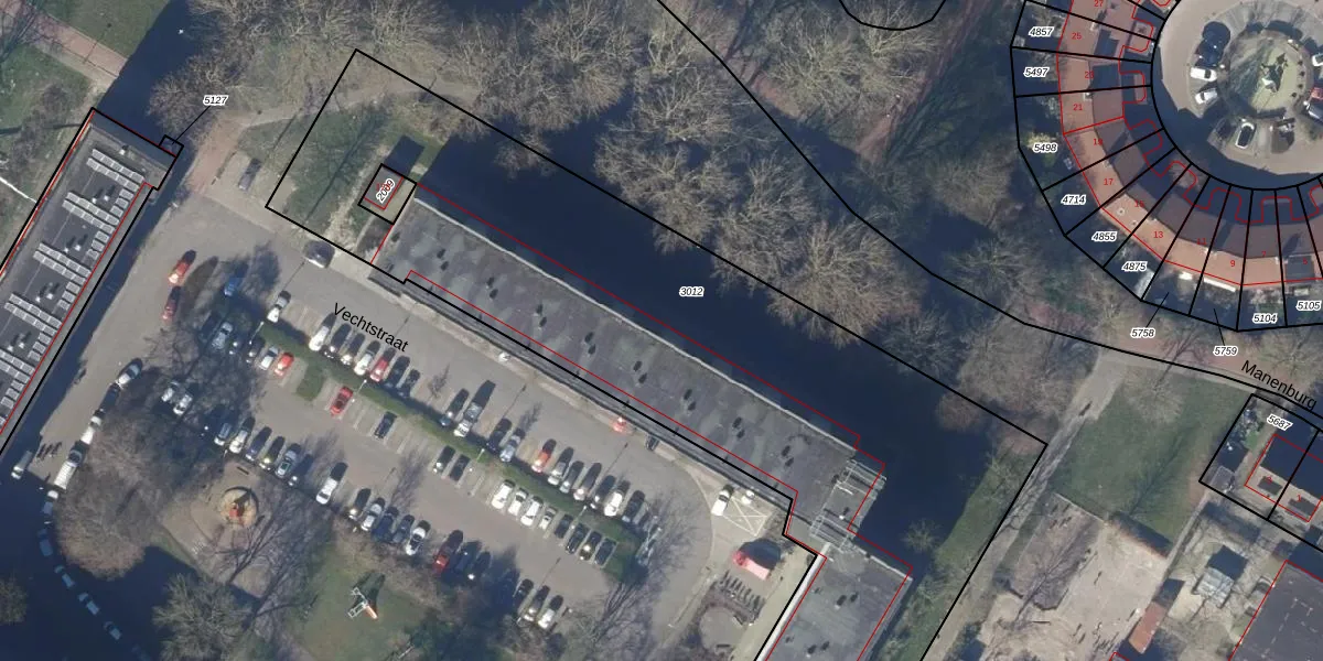 Het perceel waarop Vechtstraat 168 staat heeft een oppervlakte van 4233 m². Dit is een zeer groot perceel. De perceeloppervlakte wordt geregistreerd door het Kadaster. Gedetailleerde informatie over de maten van dit perceel kunt u vinden in het rapport Kadastrale kaart met maatvoering van Vechtstraat 168.