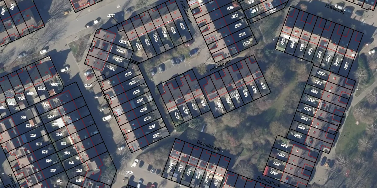 Het perceel waarop Velduilstraat 16 staat heeft een oppervlakte van 122 m². Dit is een middelgroot perceel. De perceeloppervlakte wordt geregistreerd door het Kadaster. Gedetailleerde informatie over de maten van dit perceel kunt u vinden in het rapport Kadastrale kaart met maatvoering van Velduilstraat 16.