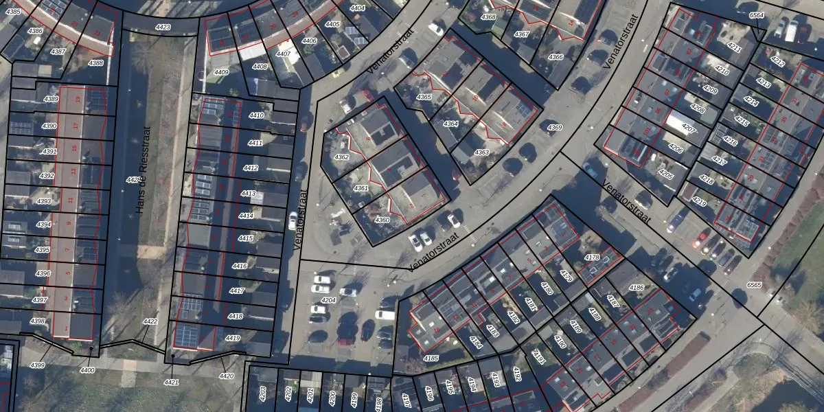 Het perceel waarop Venatorstraat 2 staat heeft een oppervlakte van 224 m². Dit is een middelgroot perceel. De perceeloppervlakte wordt geregistreerd door het Kadaster. Gedetailleerde informatie over de maten van dit perceel kunt u vinden in het rapport Kadastrale kaart met maatvoering van Venatorstraat 2.