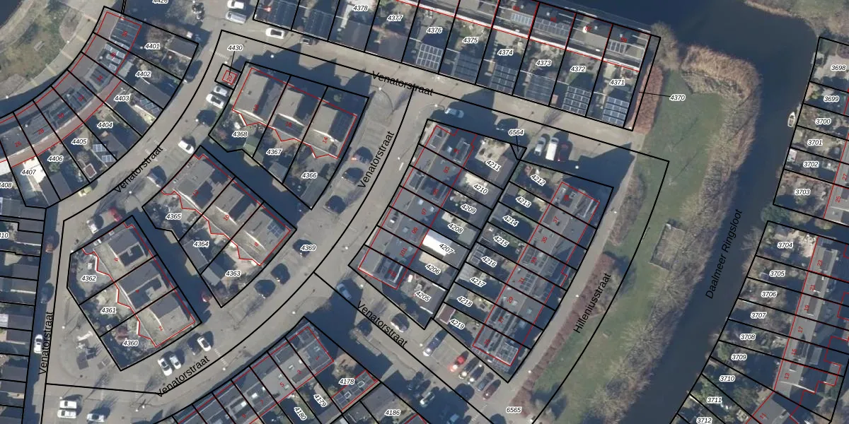 Het perceel waarop Venatorstraat 97 staat heeft een oppervlakte van 119 m². Dit is een middelgroot perceel. De perceeloppervlakte wordt geregistreerd door het Kadaster. Gedetailleerde informatie over de maten van dit perceel kunt u vinden in het rapport Kadastrale kaart met maatvoering van Venatorstraat 97.