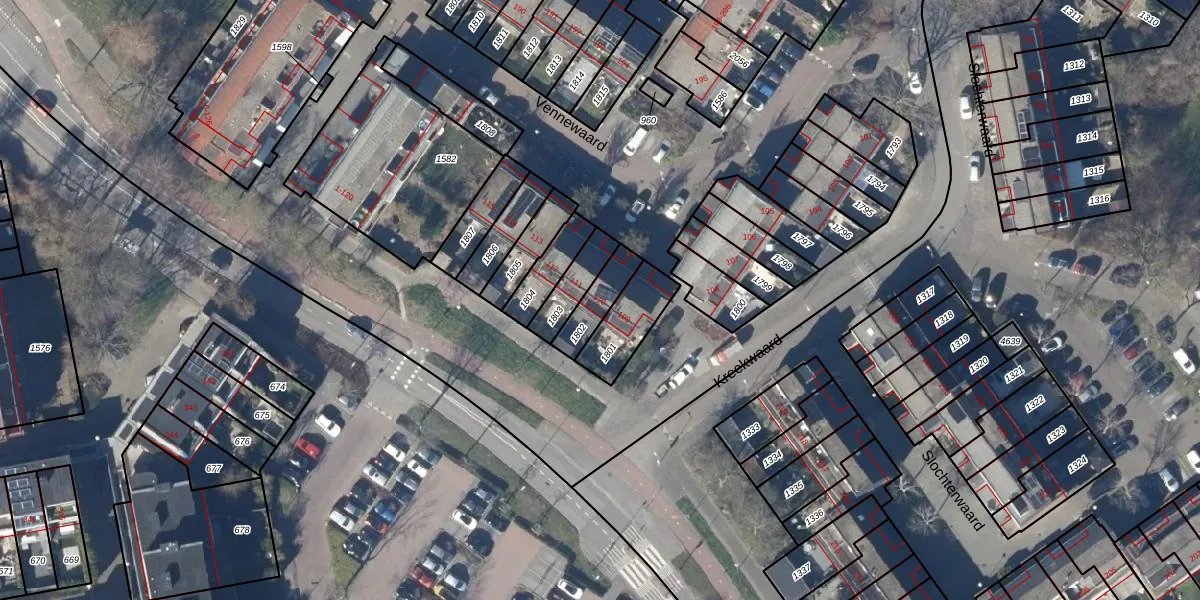 Gebruik de zoekbalk of klik op een perceel voor informatie over de adressen binnen dit perceel.