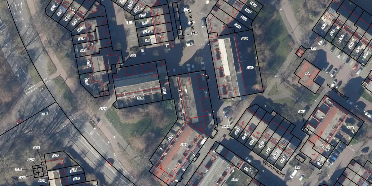 Het perceel waarop Vennewaard 14 staat heeft een oppervlakte van 1226 m². Dit is een zeer groot perceel. De perceeloppervlakte wordt geregistreerd door het Kadaster. Gedetailleerde informatie over de maten van dit perceel kunt u vinden in het rapport Kadastrale kaart met maatvoering van Vennewaard 14.