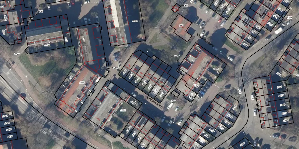 Gebruik de zoekbalk of klik op een perceel voor informatie over de adressen binnen dit perceel.