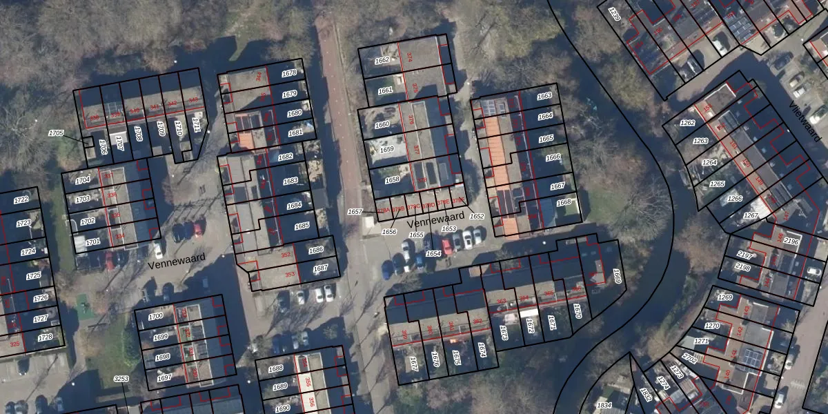 Het perceel waarop Vennewaard 378-C staat heeft een oppervlakte van 20 m². Dit is een klein perceel. De perceeloppervlakte wordt geregistreerd door het Kadaster. Gedetailleerde informatie over de maten van dit perceel kunt u vinden in het rapport Kadastrale kaart met maatvoering van Vennewaard 378-C.