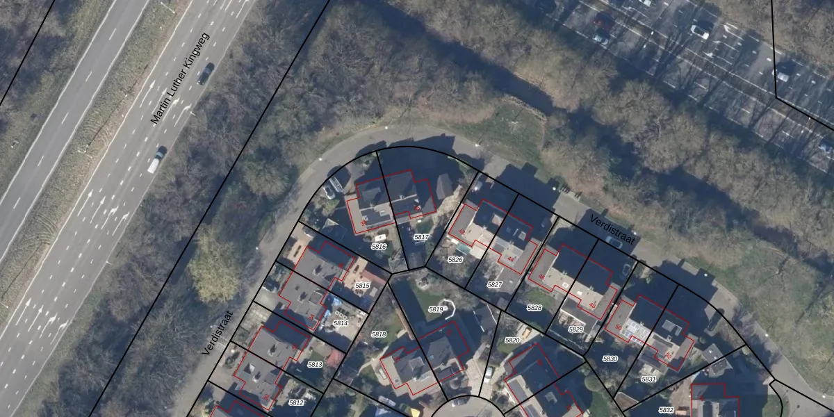 Het perceel waarop Verdistraat 40 staat heeft een oppervlakte van 418 m². Dit is een groot perceel. De perceeloppervlakte wordt geregistreerd door het Kadaster. Gedetailleerde informatie over de maten van dit perceel kunt u vinden in het rapport Kadastrale kaart met maatvoering van Verdistraat 40.