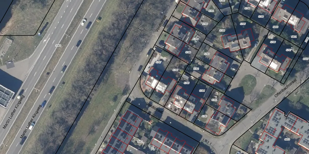 Het perceel waarop Verdistraat 8 staat heeft een oppervlakte van 363 m². Dit is een groot perceel. De perceeloppervlakte wordt geregistreerd door het Kadaster. Gedetailleerde informatie over de maten van dit perceel kunt u vinden in het rapport Kadastrale kaart met maatvoering van Verdistraat 8.