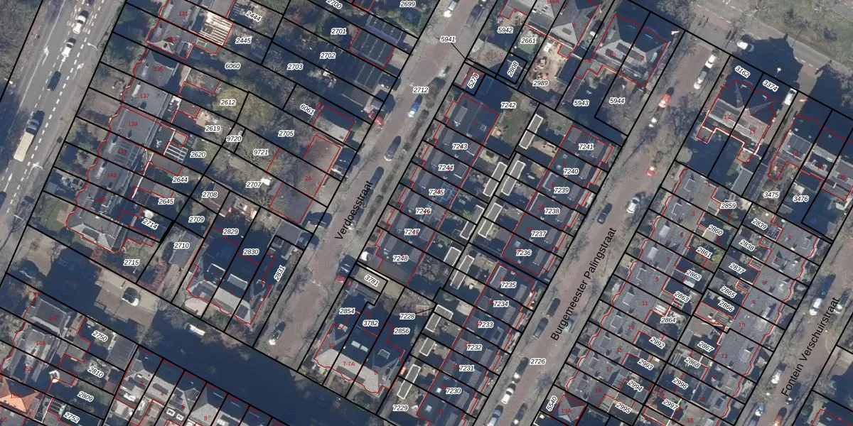 Het perceel waarop Verdoesstraat 13 staat heeft een oppervlakte van 119 m². Dit is een middelgroot perceel. De perceeloppervlakte wordt geregistreerd door het Kadaster. Gedetailleerde informatie over de maten van dit perceel kunt u vinden in het rapport Kadastrale kaart met maatvoering van Verdoesstraat 13.