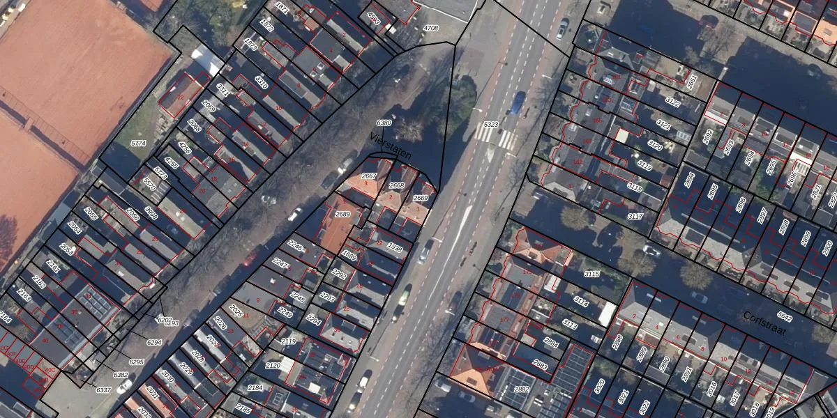 Het perceel waarop Vierstaten 1 staat heeft een oppervlakte van 100 m². Dit is een middelgroot perceel. De perceeloppervlakte wordt geregistreerd door het Kadaster. Gedetailleerde informatie over de maten van dit perceel kunt u vinden in het rapport Kadastrale kaart met maatvoering van Vierstaten 1.