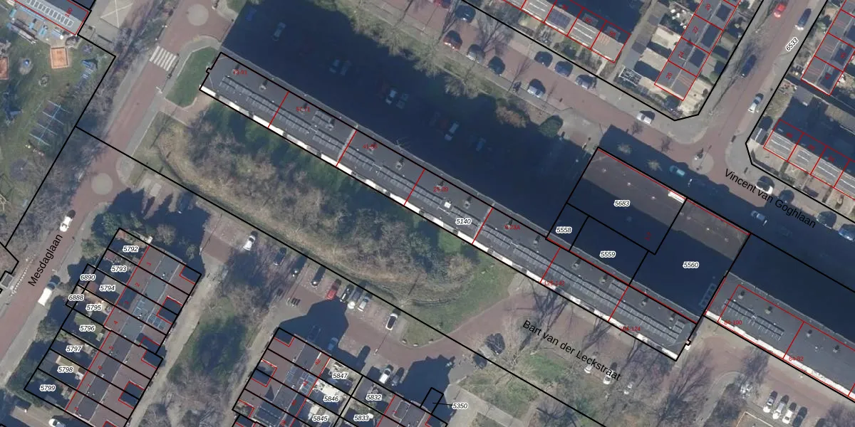 Het perceel waarop Vincent van Goghlaan 35 staat heeft een oppervlakte van 1379 m². Dit is een zeer groot perceel. De perceeloppervlakte wordt geregistreerd door het Kadaster. Gedetailleerde informatie over de maten van dit perceel kunt u vinden in het rapport Kadastrale kaart met maatvoering van Vincent van Goghlaan 35.