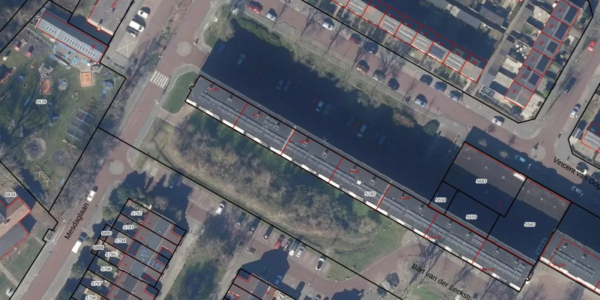 Het perceel waarop Vincent van Goghlaan 47 staat heeft een oppervlakte van 1379 m². Dit is een zeer groot perceel. De perceeloppervlakte wordt geregistreerd door het Kadaster. Gedetailleerde informatie over de maten van dit perceel kunt u vinden in het rapport Kadastrale kaart met maatvoering van Vincent van Goghlaan 47.