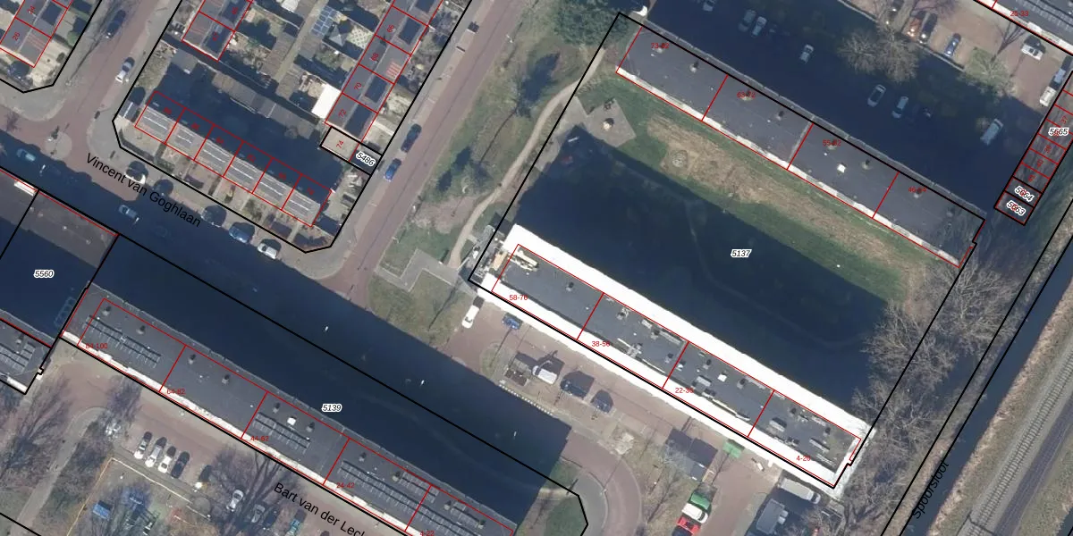Het perceel waarop Vincent van Goghlaan 70 staat heeft een oppervlakte van 4580 m². Dit is een zeer groot perceel. De perceeloppervlakte wordt geregistreerd door het Kadaster. Gedetailleerde informatie over de maten van dit perceel kunt u vinden in het rapport Kadastrale kaart met maatvoering van Vincent van Goghlaan 70.