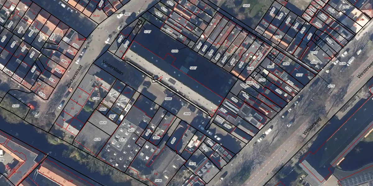 Het perceel waarop Visserslaan 10 staat heeft een oppervlakte van 1412 m². Dit is een zeer groot perceel. De perceeloppervlakte wordt geregistreerd door het Kadaster. Gedetailleerde informatie over de maten van dit perceel kunt u vinden in het rapport Kadastrale kaart met maatvoering van Visserslaan 10.