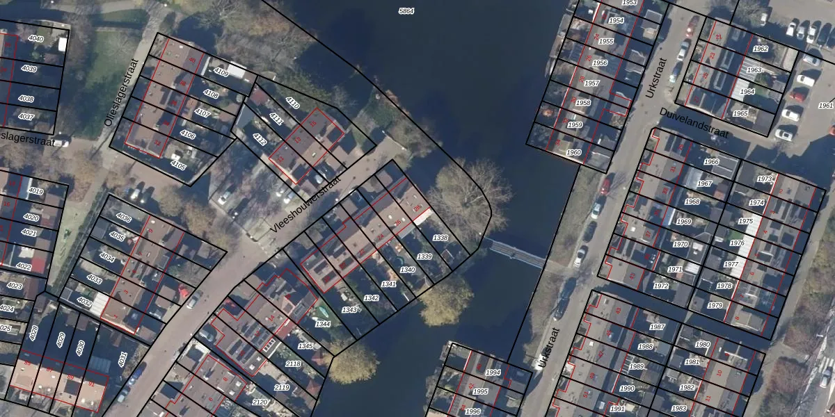 Gebruik de zoekbalk of klik op een perceel voor informatie over de adressen binnen dit perceel.