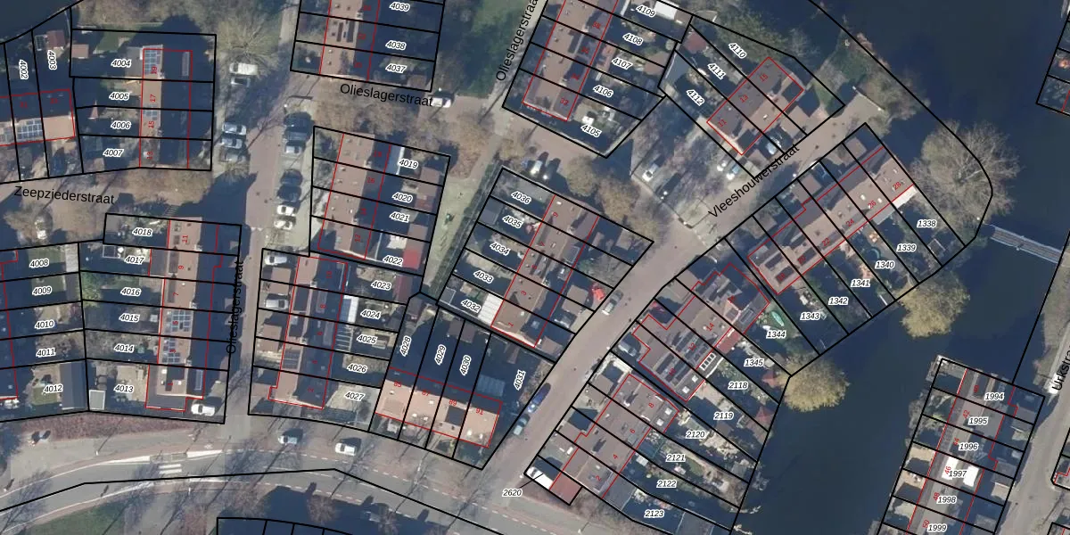 Gebruik de zoekbalk of klik op een perceel voor informatie over de adressen binnen dit perceel.