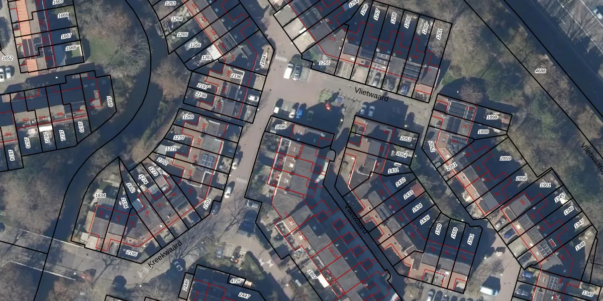 Het perceel waarop Vlietwaard 225 staat heeft een oppervlakte van 1633 m². Dit is een zeer groot perceel. De perceeloppervlakte wordt geregistreerd door het Kadaster. Gedetailleerde informatie over de maten van dit perceel kunt u vinden in het rapport Kadastrale kaart met maatvoering van Vlietwaard 225.