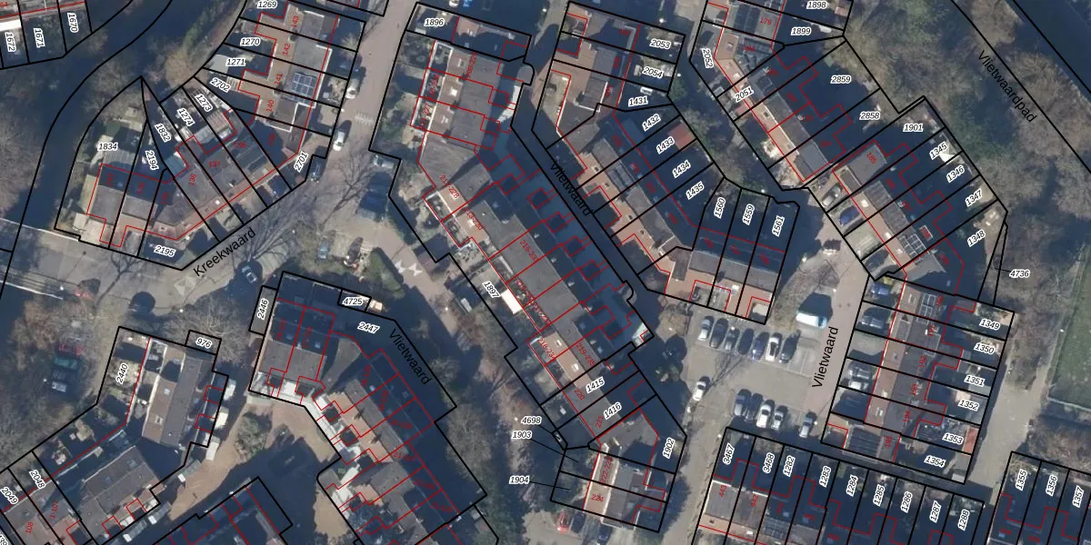 Het perceel waarop Vlietwaard 232 staat heeft een oppervlakte van 1633 m². Dit is een zeer groot perceel. De perceeloppervlakte wordt geregistreerd door het Kadaster. Gedetailleerde informatie over de maten van dit perceel kunt u vinden in het rapport Kadastrale kaart met maatvoering van Vlietwaard 232.
