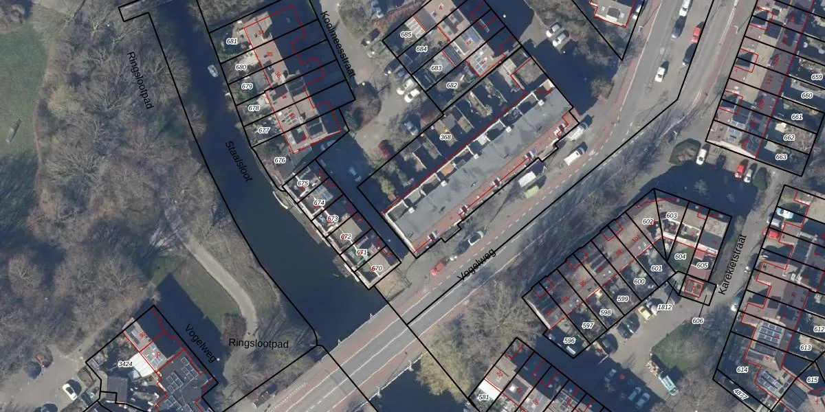 Het perceel waarop Vogelweg 100 staat heeft een oppervlakte van 1213 m². Dit is een zeer groot perceel. De perceeloppervlakte wordt geregistreerd door het Kadaster. Gedetailleerde informatie over de maten van dit perceel kunt u vinden in het rapport Kadastrale kaart met maatvoering van Vogelweg 100.