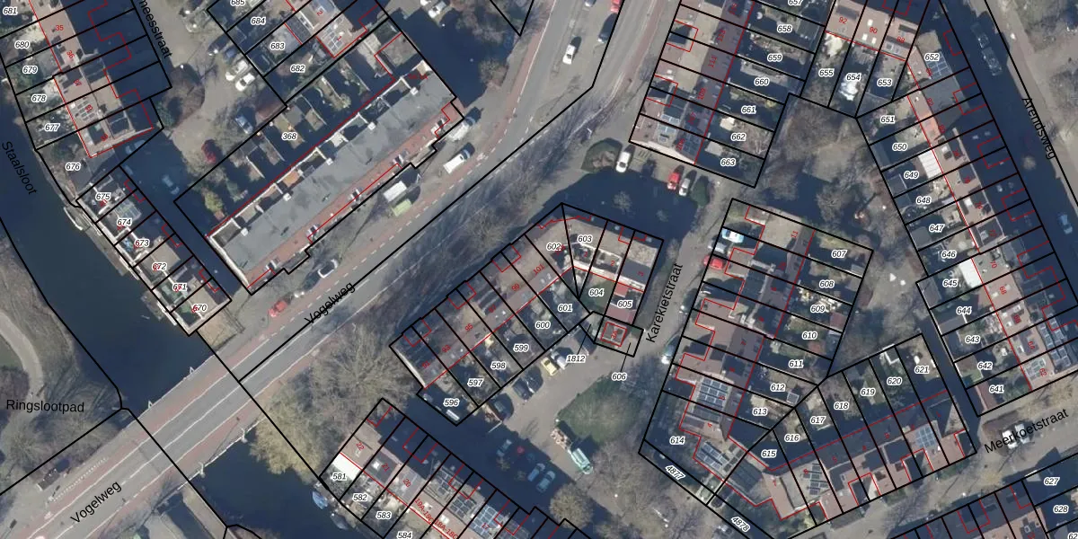 Vogelweg 101 is gelegen op kadastraal perceel AMR01I601. Deze kadastrale aanduiding is uniek en wordt gebruikt door het Kadaster om eigendomsrechten en andere zakelijke rechten vast te leggen. Het perceel maakt onderdeel uit van de kadastrale gemeente Alkmaar.
