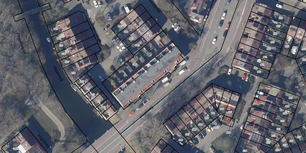 Het perceel waarop Vogelweg 112 staat heeft een oppervlakte van 1213 m². Dit is een zeer groot perceel. De perceeloppervlakte wordt geregistreerd door het Kadaster. Gedetailleerde informatie over de maten van dit perceel kunt u vinden in het rapport Kadastrale kaart met maatvoering van Vogelweg 112.
