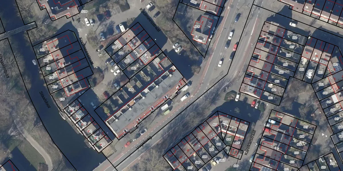 Het perceel waarop Vogelweg 126 staat heeft een oppervlakte van 1213 m². Dit is een zeer groot perceel. De perceeloppervlakte wordt geregistreerd door het Kadaster. Gedetailleerde informatie over de maten van dit perceel kunt u vinden in het rapport Kadastrale kaart met maatvoering van Vogelweg 126.