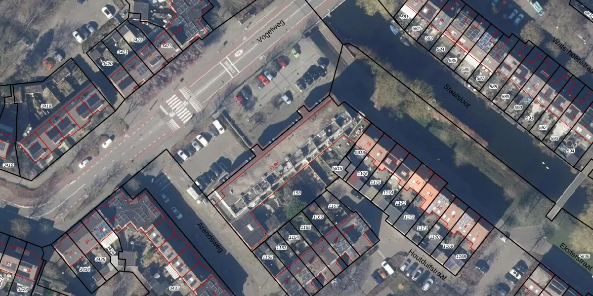 Het perceel waarop Vogelweg 61 staat heeft een oppervlakte van 1287 m². Dit is een zeer groot perceel. De perceeloppervlakte wordt geregistreerd door het Kadaster. Gedetailleerde informatie over de maten van dit perceel kunt u vinden in het rapport Kadastrale kaart met maatvoering van Vogelweg 61.