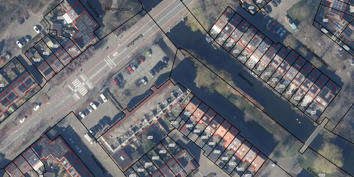 Het perceel waarop Vogelweg 81 staat heeft een oppervlakte van 1287 m². Dit is een zeer groot perceel. De perceeloppervlakte wordt geregistreerd door het Kadaster. Gedetailleerde informatie over de maten van dit perceel kunt u vinden in het rapport Kadastrale kaart met maatvoering van Vogelweg 81.