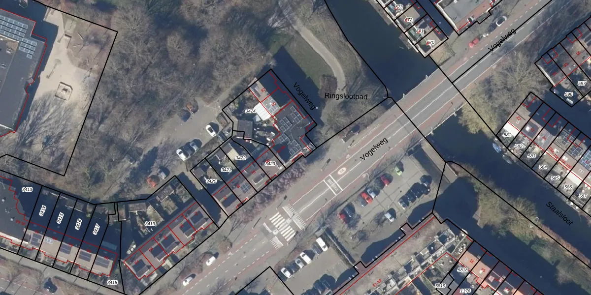 Het perceel waarop Vogelweg 84 staat heeft een oppervlakte van 563 m². Dit is een groot perceel. De perceeloppervlakte wordt geregistreerd door het Kadaster. Gedetailleerde informatie over de maten van dit perceel kunt u vinden in het rapport Kadastrale kaart met maatvoering van Vogelweg 84.