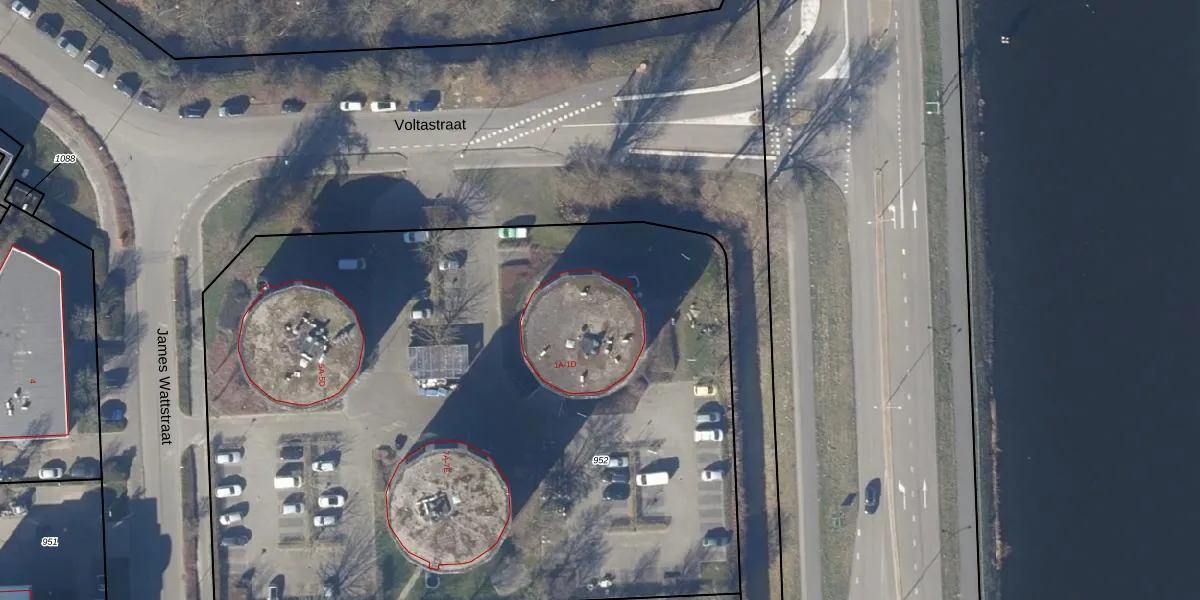 Het perceel waarop Voltastraat 1-D staat heeft een oppervlakte van 5440 m². Dit is een zeer groot perceel. De perceeloppervlakte wordt geregistreerd door het Kadaster. Gedetailleerde informatie over de maten van dit perceel kunt u vinden in het rapport Kadastrale kaart met maatvoering van Voltastraat 1-D.