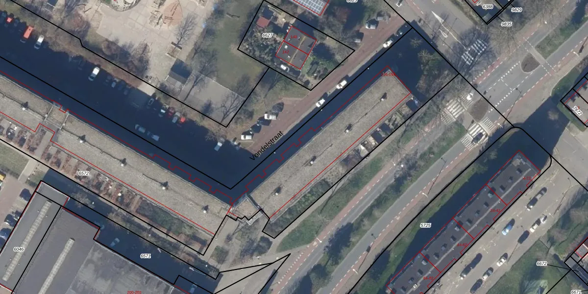 Het perceel waarop Vondelstraat 136 staat heeft een oppervlakte van 6869 m². Dit is een zeer groot perceel. De perceeloppervlakte wordt geregistreerd door het Kadaster. Gedetailleerde informatie over de maten van dit perceel kunt u vinden in het rapport Kadastrale kaart met maatvoering van Vondelstraat 136.