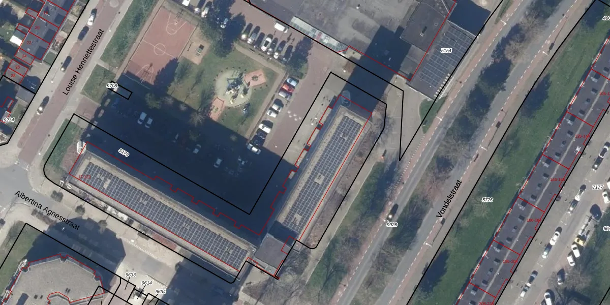 Het perceel waarop Vondelstraat 214 staat heeft een oppervlakte van 3105 m². Dit is een zeer groot perceel. De perceeloppervlakte wordt geregistreerd door het Kadaster. Gedetailleerde informatie over de maten van dit perceel kunt u vinden in het rapport Kadastrale kaart met maatvoering van Vondelstraat 214.