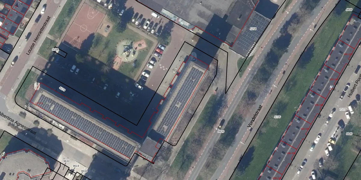Het perceel waarop Vondelstraat 256 staat heeft een oppervlakte van 3105 m². Dit is een zeer groot perceel. De perceeloppervlakte wordt geregistreerd door het Kadaster. Gedetailleerde informatie over de maten van dit perceel kunt u vinden in het rapport Kadastrale kaart met maatvoering van Vondelstraat 256.