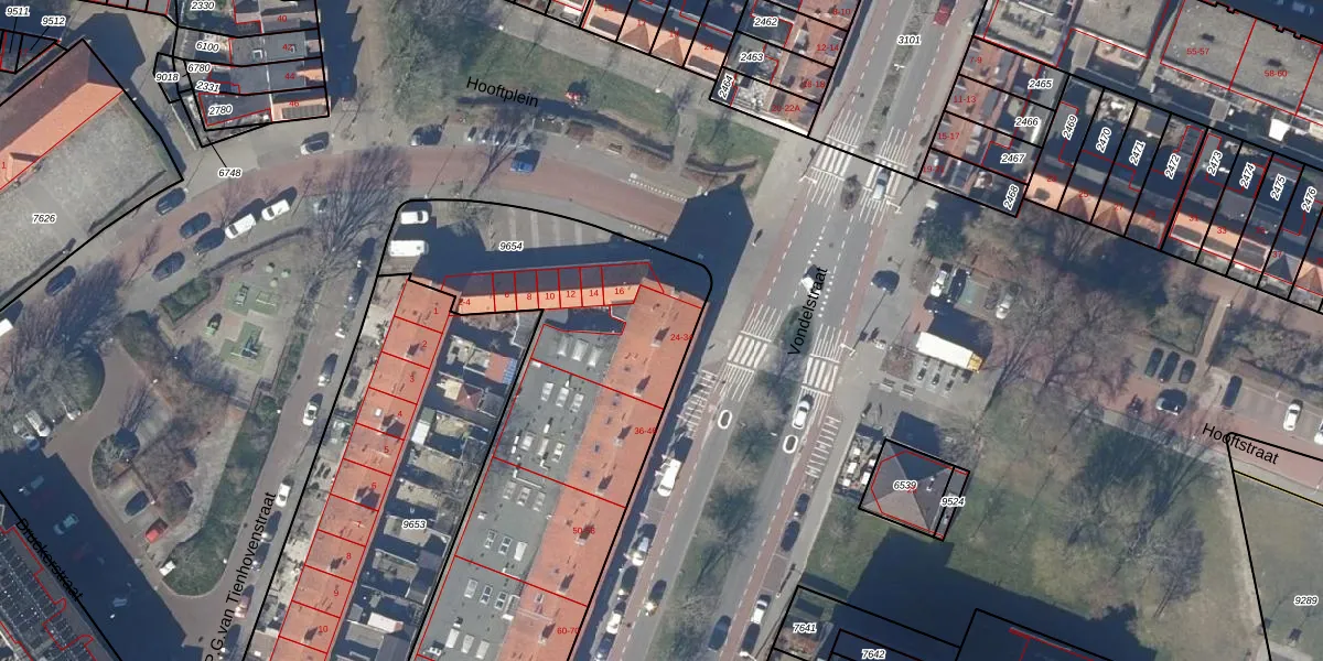 Het perceel waarop Vondelstraat 26 staat heeft een oppervlakte van 2455 m². Dit is een zeer groot perceel. De perceeloppervlakte wordt geregistreerd door het Kadaster. Gedetailleerde informatie over de maten van dit perceel kunt u vinden in het rapport Kadastrale kaart met maatvoering van Vondelstraat 26.