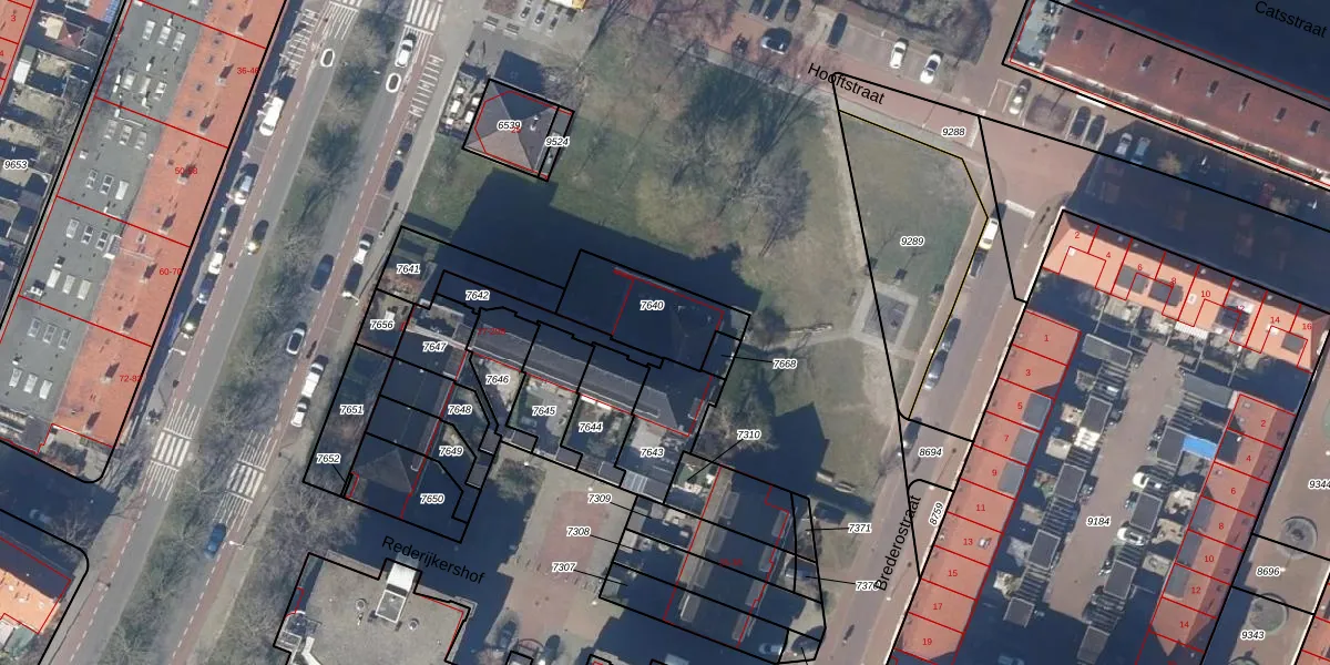 Gebruik de zoekbalk of klik op een perceel voor informatie over de adressen binnen dit perceel.