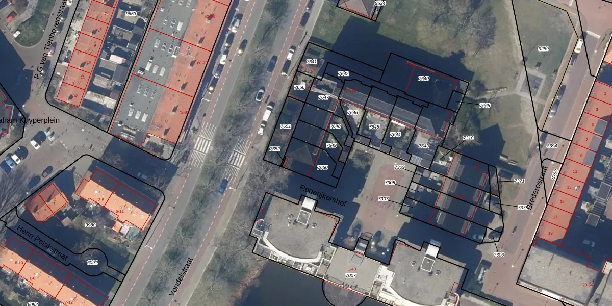 Gebruik de zoekbalk of klik op een perceel voor informatie over de adressen binnen dit perceel.