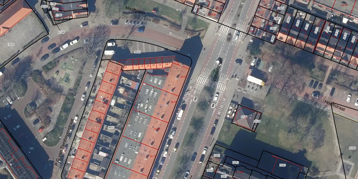 Het perceel waarop Vondelstraat 34 staat heeft een oppervlakte van 2455 m². Dit is een zeer groot perceel. De perceeloppervlakte wordt geregistreerd door het Kadaster. Gedetailleerde informatie over de maten van dit perceel kunt u vinden in het rapport Kadastrale kaart met maatvoering van Vondelstraat 34.