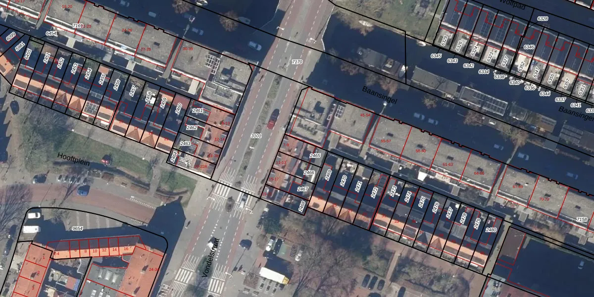 Het perceel waarop Vondelstraat 7 staat heeft een oppervlakte van 96 m². Dit is een klein perceel. De perceeloppervlakte wordt geregistreerd door het Kadaster. Gedetailleerde informatie over de maten van dit perceel kunt u vinden in het rapport Kadastrale kaart met maatvoering van Vondelstraat 7.