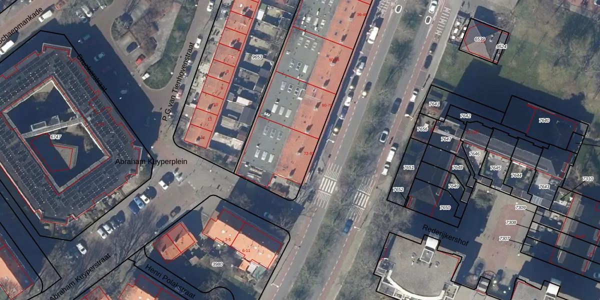 Het perceel waarop Vondelstraat 74 staat heeft een oppervlakte van 2455 m². Dit is een zeer groot perceel. De perceeloppervlakte wordt geregistreerd door het Kadaster. Gedetailleerde informatie over de maten van dit perceel kunt u vinden in het rapport Kadastrale kaart met maatvoering van Vondelstraat 74.