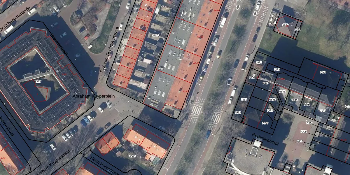 Het perceel waarop Vondelstraat 76 staat heeft een oppervlakte van 2455 m². Dit is een zeer groot perceel. De perceeloppervlakte wordt geregistreerd door het Kadaster. Gedetailleerde informatie over de maten van dit perceel kunt u vinden in het rapport Kadastrale kaart met maatvoering van Vondelstraat 76.